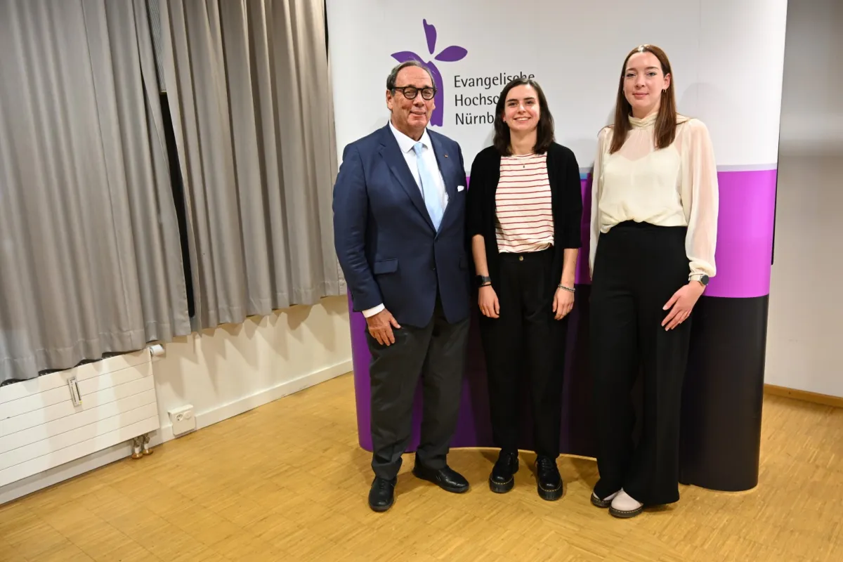 Am 18. November wurden an der EVHN fünf Absolventinnen und zwei Absolventen für ihre Abschlussarbeiten ausgezeichnet. Die Akademie für Hospizarbeit und Palliativmedizin Nürnberg, die Josef und Luise Kraft-Stiftung, das Religionspädagogisches Zentrum Heilsbronn, die Rummelsberger Diakonie und die Stadtmission Nürnberg vergaben Förderpreise für herausragende Bachelor- und Masterarbeiten. Bei der Preisverleihung wurden die Preisträgerinnen und Preisträger geehrt und erhielten Preisgelder zwischen 300 und 1.500 Euro. Herzlichen Glückwunsch, Tim Holland-Moritz, Helene Martha Bernstein, Nicole Ferstl, Christina Sandner, Susanne Wood, Kristina Kröber und Tobias Göttfert.